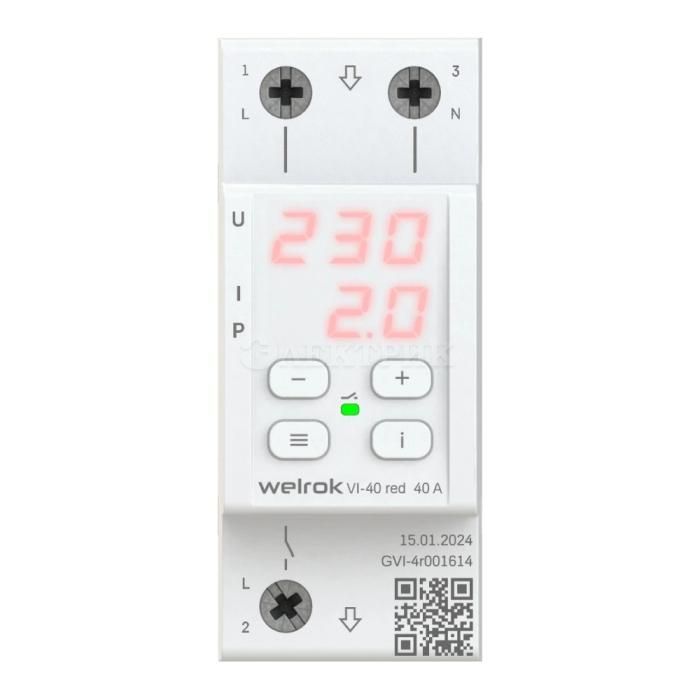 Устройство контроля Welrok VI предназначено для защиты оборудования от перепадов напряжения и последствий обрыва нулевого провода, а также превышения тока или мощности. В случае выхода напряжения, тока или мощности за пределы установленных значений, оно отключает нагрузку. После восстановления нормальных параметров напряжения и окончания времени задержки нагрузка подключается автоматически.