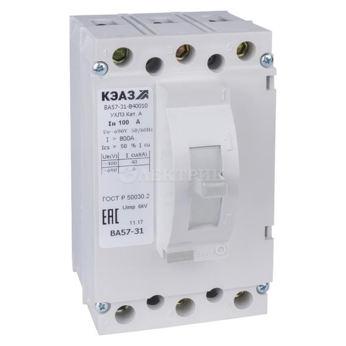 Автоматический выключатель на три полюса в литом корпусе для переменного тока с номинальным током 40 ампер.