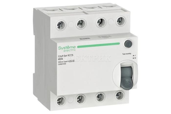 Дифференциальный выключатель тока (ВДТ) или устройство защитного отключения (УЗО) серии City9 Set Systeme Electric представляет собой селективное, 4-полюсное устройство с номинальным током 40А и током утечки 300 мА, тип А, электромеханическое. Его используют в электрических сетях с напряжением 400В. ВДТ типа S устанавливается на вводе и обеспечивает полную селективность благодаря задержке срабатывания. Кнопка для тестирования позволяет проверять работоспособность устройства. Крепится на DIN-рейку шириной 35 мм и поддерживает подключение как сверху, так и снизу. Безопасные клеммы защищены от неправильного подключения.