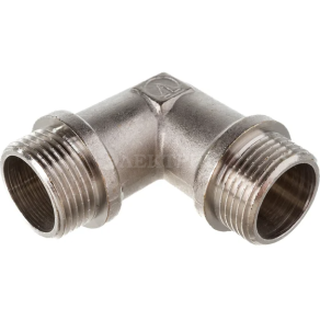Угловой латунный никелированный фитинг. Резьба - наружная/наружная, цилиндрическая трубная по ГОСТу 6357 (ISO 228, EN 10226).