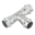 Двухраструбный пресс-тройник с наружней резьбой, изготовленный из нержавеющей стали, предназначен для соединения тонкостенных стальных труб с резьбовыми элементами в системах водоснабжения, отопления и других инженерных или технологических установках. Фитинг рассчитан на работу при максимальной температуре до 120 °С и номинальном давлении 16 бар.