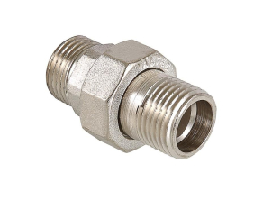 Сгон разъемный с наружной резьбой. Тип соединения - `американка` (накидной гайкой). Детали выполнены из сантехнической латуни высокого качества (марка CW617N, евростандарт EN12165), никелированы. Наличие резинового (EPDM) уплотнительного кольца ограничивает рабочую температуру применения сгона 120 градусами. Максимальное усилие накручивания накидной гайки - 30 H-м. Присоединительная резьба - цилиндрическая трубная (ГОСТ 6357). Область использования сгона - трубопроводы из стали, меди, латуни, пластиковые, металлопластиковые.