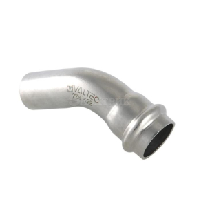 Однораструбный пресс-угольник 45 градусов из нержавеющей стали обеспечивает соединение тонкостенных стальных труб систем водоснабжения, отопления, иных инженерных и технологических установок с рабочей температурой до 120 градусов и давлением до 16 бар. Изделие изготовлено из стали AISI 304. Материал уплотнения - эластомер EPDM. Отдельно можно приобрести уплотнительные кольца из FPM (витон), в этом случае максимальная рабочая температура увеличивается до 140 градусов. Благодаря бесштуцерной конструкции соединитель обладает малым коэффициентом местного сопротивления - сужение канала практически отсутствует. Фитинг рассчитан на обжатие с помощью пресс-инструмента V-профиля.