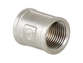 Муфта резьбовая - фитинг с двумя внутренними резьбами. Изготовлена методом объемного горячего объемного прессования из сантехнической латуни марки CW617N (европейский стандарт EN12165) с гальваническим нанесением никелевого покрытия. Цилиндрическая трубная резьба муфты совместима также с наружной конической по ГОСТ 6211 (ISO R7).