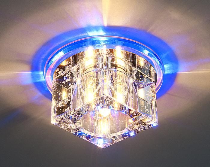 Синие светодиоды установлены в прозрачный ободок светильника. Светодиодная подсветка создает потрясающий световой рисунок на потолке.