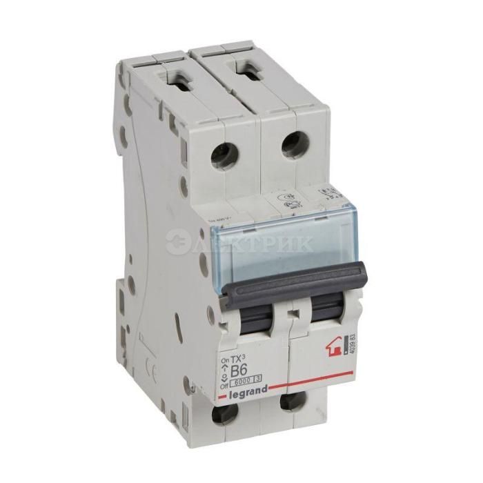 Автоматический выключатель TX³ 6000 - 6 кА - тип характеристики B - 2П - 230/400 В~ - 6 А - 2 модуля