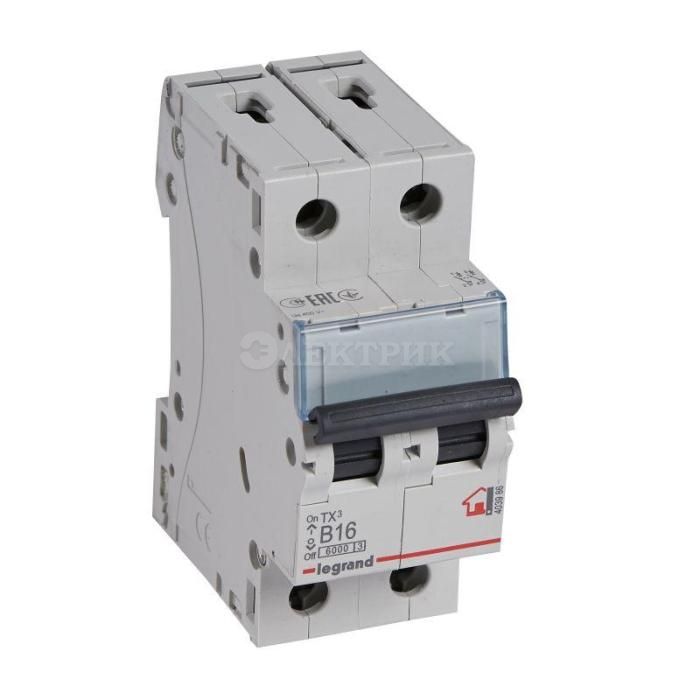 Автоматический выключатель TX³ 6000 - 6 кА - тип характеристики B - 2П - 230/400 В~ - 16 А - 2 модуля