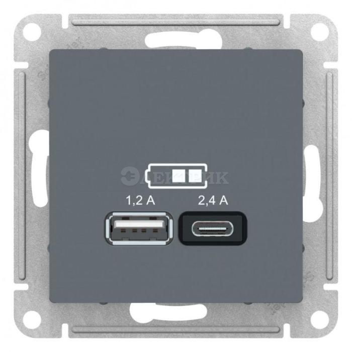 Механизм розетки USB AtlasDesign A+С 5В/2.4А 2х5В/1.2А грифель SchE ATN000739 от Systeme Electric - Информационные розетки - купить в магазине Электрик.