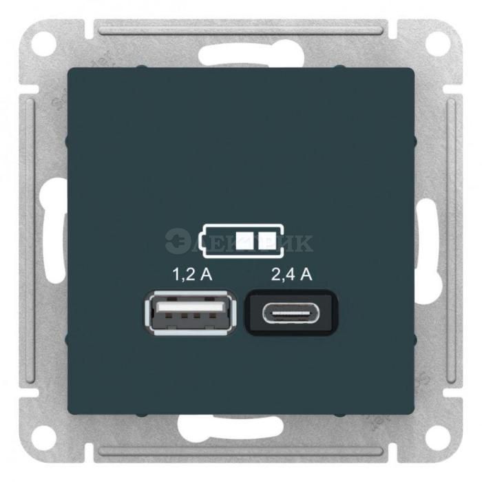 Механизм розетки USB AtlasDesign A+С 5В/2.4А 2х5В/1.2А изумруд SchE ATN000839 от Systeme Electric - Информационные розетки - купить в магазине Электрик.