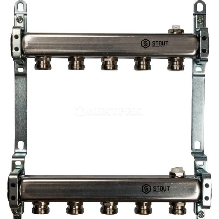 SMS 0923 000005 STOUT Коллектор из нержавеющей стали для радиаторной разводки 5 вых. от STOUT - Коллекторные группы - купить в магазине Электрик.
