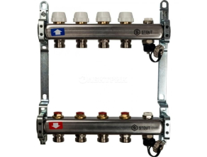 SMS-0932-000004 STOUT Коллектор из нержавеющей стали без расходомеров, с клапаном вып. воздуха и сливом 4 вых. от STOUT - Коллекторные группы - купить в магазине Электрик.