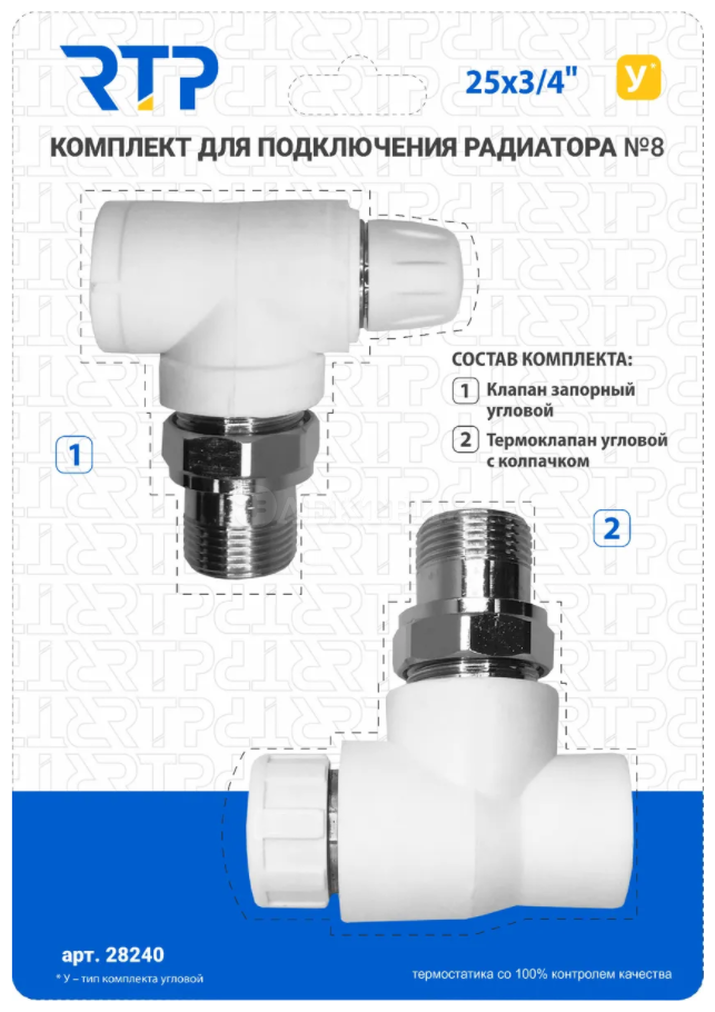 Комплект№8 (Термостатический клапан угловой с колпачком, клапан запорный угловой)PPR 25X3/4 РТП от RTP - Комплектующие для радиаторов - купить в магазине Электрик.