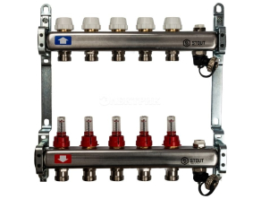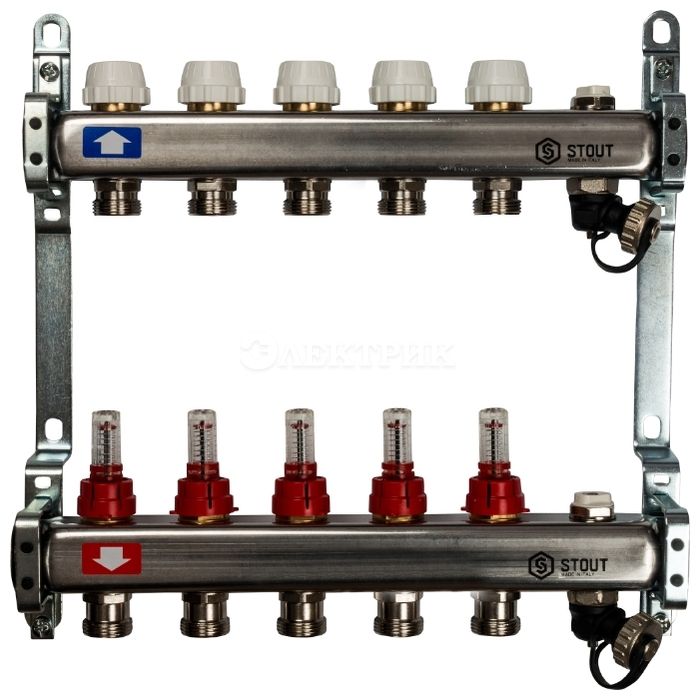 SMS-0927-000005 STOUT Коллектор из нержавеющей стали с расходомерами, с клапаном вып. воздуха и сливом 5 вых. от STOUT - Коллекторные группы - купить в магазине Электрик.