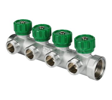 FK 3824 3412 FAR Коллектор распределительный 3/4", проходной, хромированный, 4 отвода 1/2" ЕК от FAR - Коллекторы для систем водоснабжения - купить в магазине Электрик.