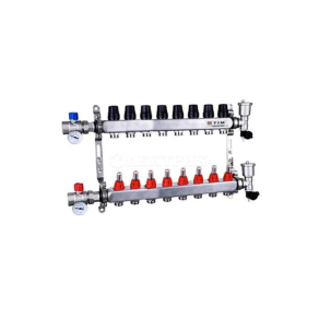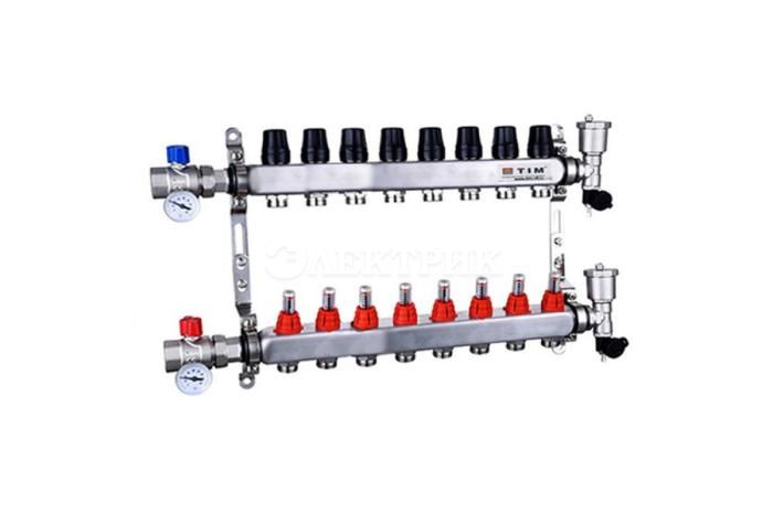 Коллекторная группа с расходомером нержавеющий корпус ПОЛНЫЙ К-Т 1" 8 ходов КВАДРАТ ТИМ от TIM - Коллекторные группы - купить в магазине Электрик.