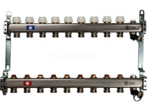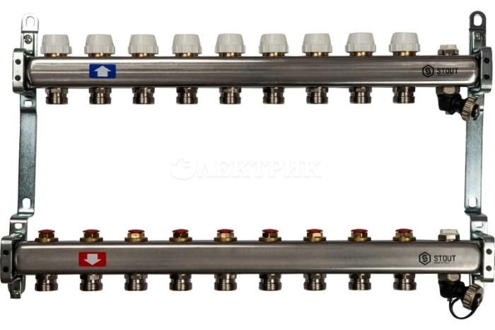 SMS-0932-000009 STOUT Коллектор из нержавеющей стали без расходомеров, с клапаном вып. воздуха и сливом 9 вых. от STOUT - Коллекторные группы - купить в магазине Электрик.