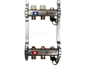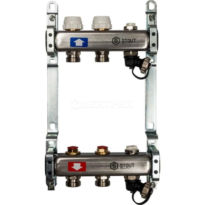 SMS-0932-000002 STOUT Коллектор из нержавеющей стали без расходомеров, с клапаном вып. воздуха и сливом 2 вых. от STOUT - Коллекторные группы - купить в магазине Электрик.