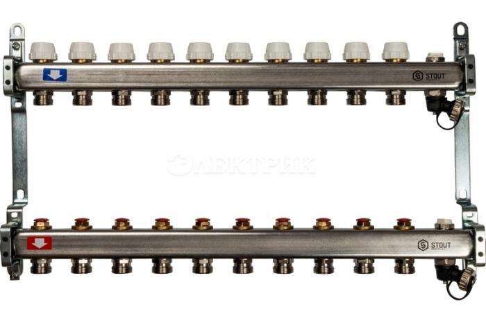 SMS-0932-000010 STOUT Коллектор из нержавеющей стали без расходомеров, с клапаном вып. воздуха и сливом 10 вых. от STOUT - Коллекторные группы - купить в магазине Электрик.