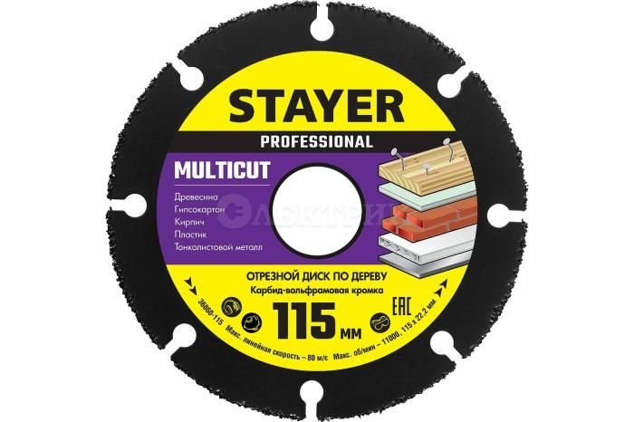 STAYER MultiCut 115х22,2мм, диск отрезной по дереву для УШМ от Stayer - Инструмент - купить в магазине Электрик.