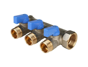 SMB 6201 341203 STOUT Коллектор с шаровыми кранами 3/4", 3 отвода 1/2" (синие ручки) от STOUT - Коллекторы для систем водоснабжения - купить в магазине Электрик.
