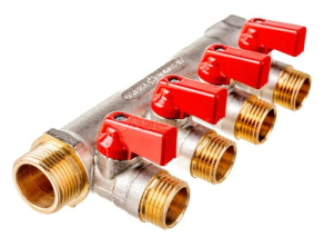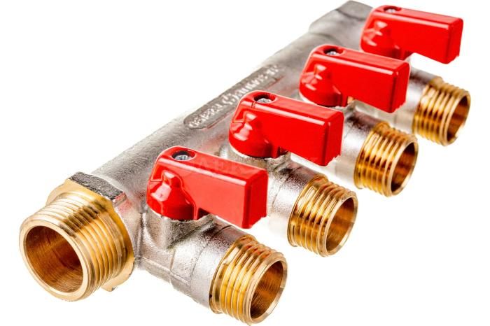 SMB 6200 341204 STOUT Коллектор с шаровыми кранами 3/4", 4 отвода 1/2" (красные ручки) от STOUT - Коллекторы для систем водоснабжения - купить в магазине Электрик.