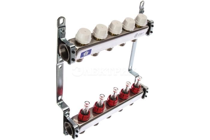 SMS 0917 000005 STOUT Коллектор из нержавеющей стали с расходомерами 5 вых. от STOUT - Коллекторные группы - купить в магазине Электрик.