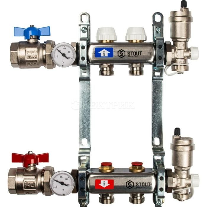 SMS 0912 000002 STOUT Коллектор из нержавеющей стали в сборе без расходомеров 2 вых. от STOUT - Коллекторные группы - купить в магазине Электрик.