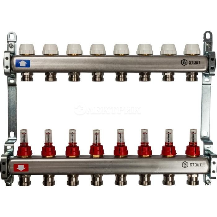SMS 0917 000008 STOUT Коллектор из нержавеющей стали с расходомерами 8 вых. от STOUT - Коллекторные группы - купить в магазине Электрик.