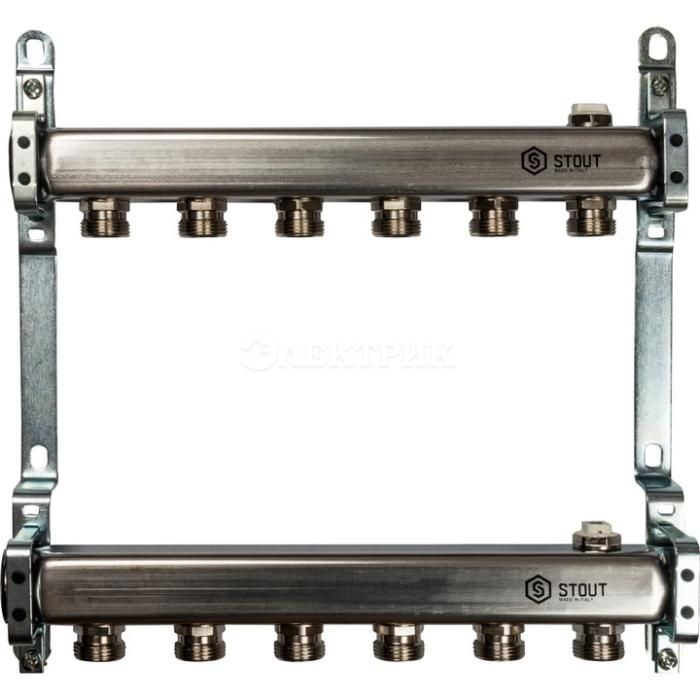 SMS 0923 000006 STOUT Коллектор из нержавеющей стали для радиаторной разводки 6 вых. от STOUT - Коллекторные группы - купить в магазине Электрик.
