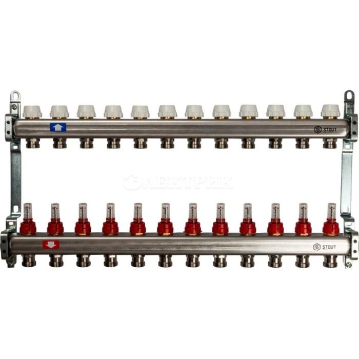 SMS 0917 000012 STOUT Коллектор из нержавеющей стали с расходомерами 12 вых. от STOUT - Коллекторные группы - купить в магазине Электрик.