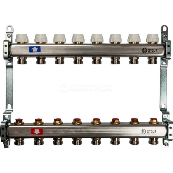 SMS 0922 000008 STOUT Коллектор из нержавеющей стали без расходомеров 8 вых. от STOUT - Коллекторные группы - купить в магазине Электрик.