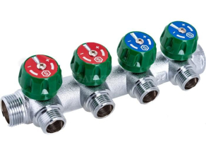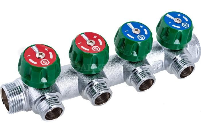 SMB-6849-341204 STOUT Коллектор регулирующий 3/4", 4 отвода 1/2" плоское уплотнение от STOUT - Коллекторы для систем водоснабжения - купить в магазине Электрик.