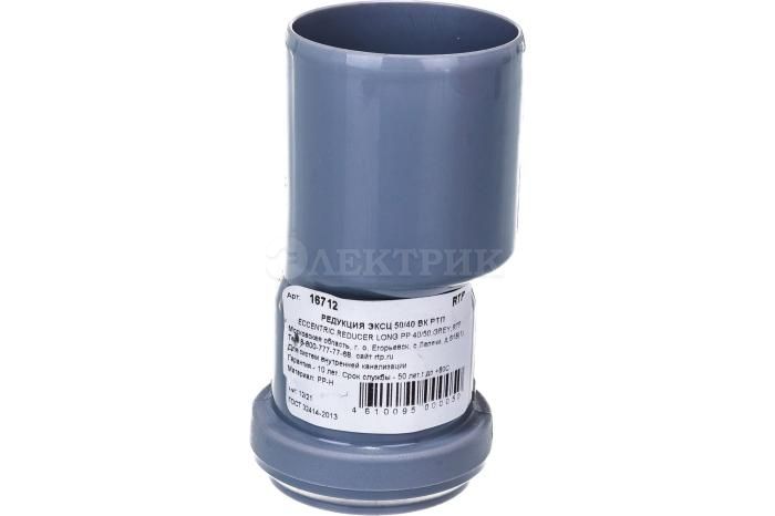 Редукция эксцентрическая ВК ПП 50х40 коробка ,серый РТП от RTP - Внутренняя канализация - купить в магазине Электрик.
