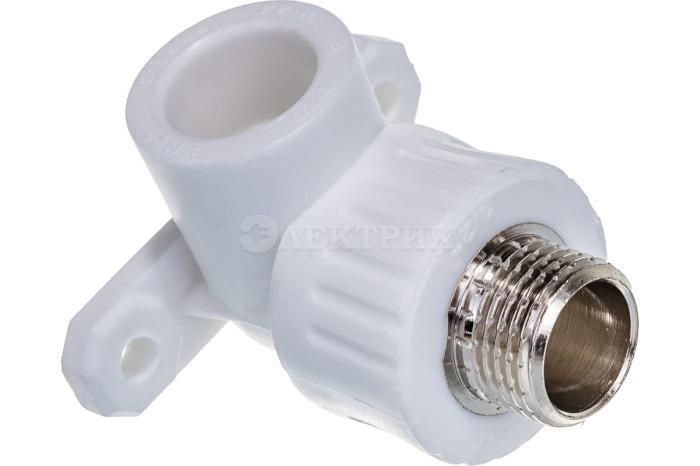 Угольник комбинированный с креплением PPR наружная резьба 20х 1/2, белый, РТП от RTP - Фитинги для ППР труб - купить в магазине Электрик.