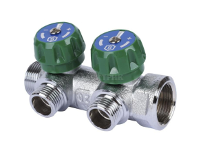 SMB-6849-341202 STOUT Коллектор регулирующий 3/4", 2 отвода 1/2" плоское уплотнение от STOUT - Коллекторы для систем водоснабжения - купить в магазине Электрик.