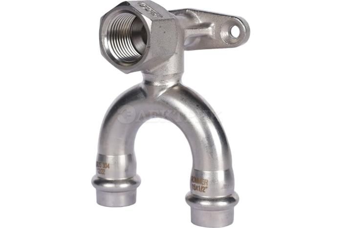 RSS-0012-001512 ROMMER Угольник проходной настенный с креплением ВПр-ВР, 15х1/2, из нержавеющей стали прессовой от Rommer - Фитинг из нержавеющей стали - купить в магазине Электрик.