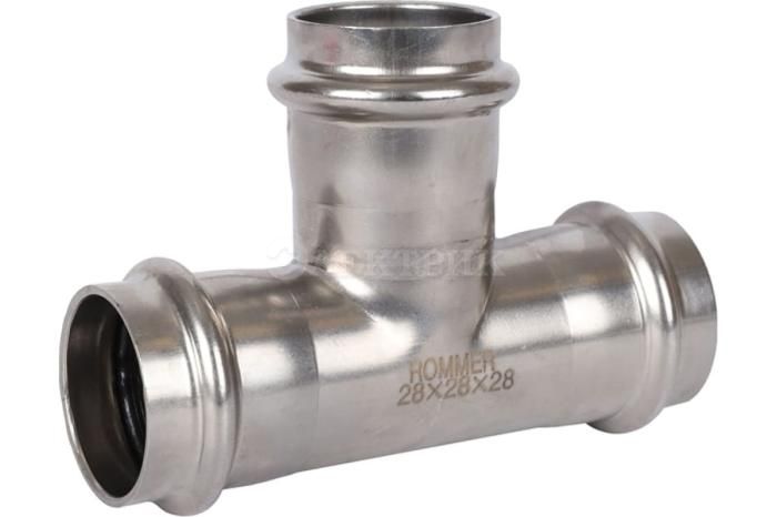 Установка труб и фитингов проста и удобна. Для прессовки используется инструмент с V-образным профилем насадки, что гарантирует качественное соединение элементов системы.
