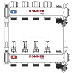 RMS-1201-000006 ROMMER Коллектор из нержавеющей стали с расходомерами, с клапаном вып. воздуха и сливом 6 вых. от Rommer - Коллекторные группы - купить в магазине Электрик.